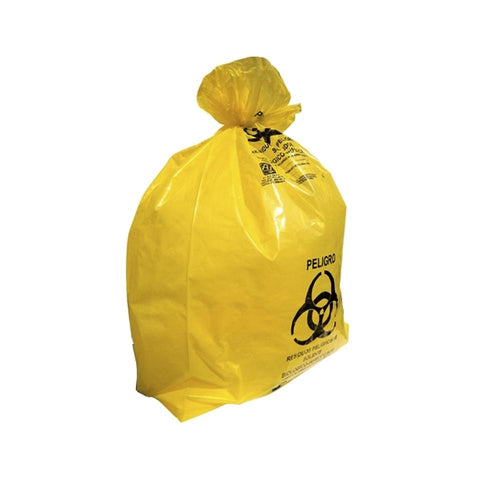 Bolsa para desechos fabricada en polietileno de baja densidad, libre de metales pesados. Ideal para la recolección de residuos biológico infecciosos como piezas quirúrgicas, órganos o tejidos. Utilizada en ambulancias, laboratorios, clínicas, consultorios, hospitales,hospitales veterinarios, centros de salud. Color amarillo con leyenda de residuos peligrosos. Medida 46 cm x 50 cm. Presentación 100 piezas.