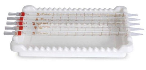 La bandeja es muy practica para poner las pipetas cuando uno las esta ocupando y evitar que se rueden y se caigan, funcional para cualquier capacidad de pipeta es fácil de transportar, ademas permite contener los residuos de sustancias que haya quedado en la pipeta.