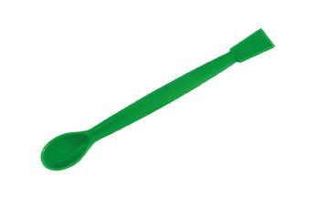 Espátula de plástico ABS, tiene doble función, un extremo es cuchara y del otro funciona como espátula, ideal para el manejo de reactivos en polvo en el laboratorio.