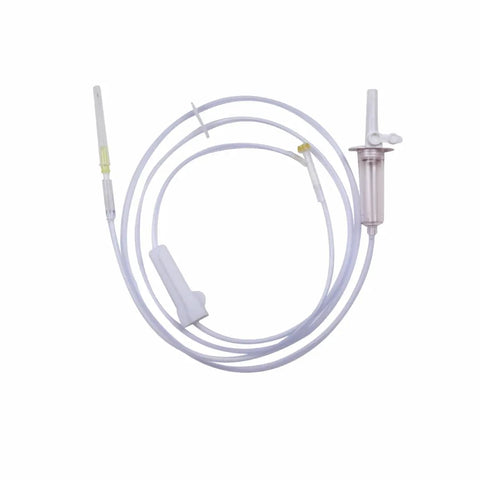 Equipo que conecta el recipiente de la solución parenteral al catéter del paciente, regulando el flujo de la infusión y administrando medicamentos adicionales con opción para frascos rígidos y bolsas colapsables.