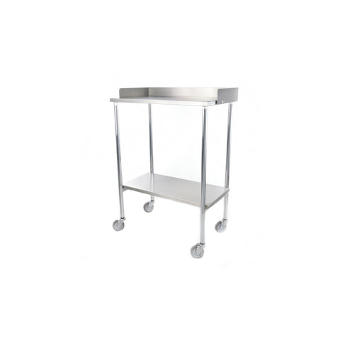 La mesa esta fabricada de acero con acabado cromado y cuenta con un tamaño estándar ideal para cualquier hospital, clínica o consultorio.