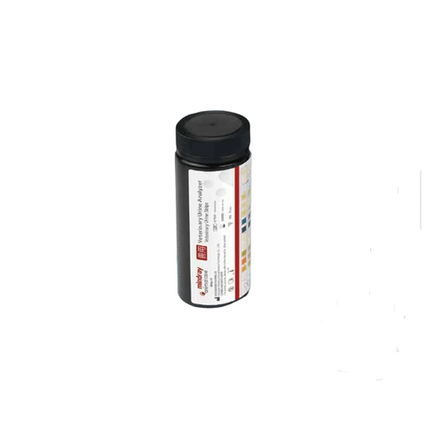 concentraciones, también conocida como microalbúmina, proteína, bilirrubina, glucosa, ácido ascórbico, gravedad específica, cetona, nitrito, creatinina, pH, sangre, calcio. Consulte la etiqueta de la caja del kit para ver los analitos específicos enumerados y compárelos con los analitos y bloques de color apropiados en la tabla de colores para ver los resultados. Las tiras se pueden leer visualmente y en el Analizador de Orina Veterinario Mindray, y están diseñadas para uso profesional únicamente.