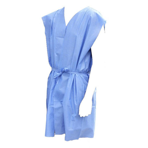 Bata desechable utilizada por los pacientes de hospitales y clinicas, la bata desechable se utiliza para la proteccion del paciente y del medico contra el contagio de virus e infecciones, bata desechable para paciente adulto fabricada en material SMS. Presentacion 10 piezas.