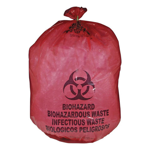 Bolsa para desechos fabricada en polietileno de baja densidad, libre de metales pesados. Ideal para la recolección de desechos biológico infecciosos como jeringas, guantes, gasas, apósitos, sondas, pañales, ropa desechable, etc. todos los materiales que contengas sangre o fluidos corporales. Utilizada en ambulancias, laboratorios, clínicas, consultorios, hospitales,hospitales veterinarios, centros de salud. Color rojo con leyenda universal de residuos peligrosos. Medida 90 cm x 1.20 cm. Presentación 100 piezas.