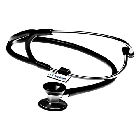 Estetoscopio cardiologico color negro VMLE8-4. Campana doble de acero inoxidable con membrana sencilla. Manguera de silicon. Olivas blandas. Incluye set de refacciones con menbrana, olivas y porta nombres.