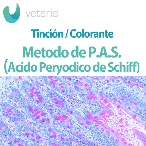 Equipo de colorantes para tinción de cortes histológicos (Ácido Peryodico-Schiff) para mucopolisacáridos ácidos y neutros, hongos y bacterias.