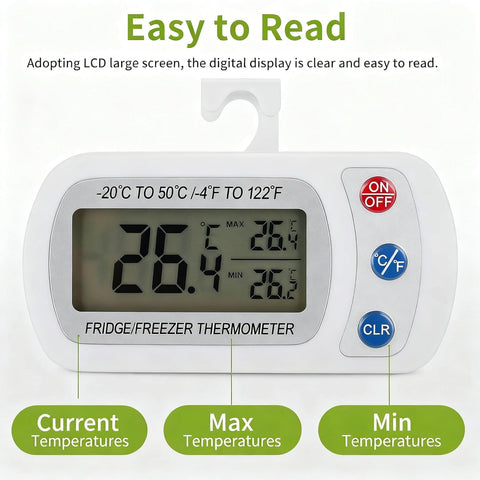 Termómetro Impermeable Digital para Refrigerador o Congelador, pantalla LCD con soporte de Suspensión.